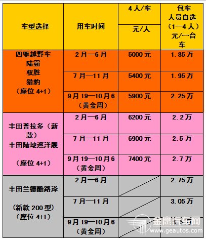商务车价格表(川藏线11天)