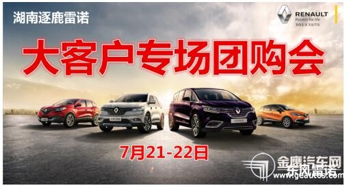 年度最“惠”日,购车正当时,东风雷诺大客户购车专场团购会!购车不用靠“关系”!就在7月21-22日,湖南逐鹿雷诺4S店,激擎盛夏,震撼开启!限时钜惠,尊享团购价!懂你所想,纵情一夏!3天后,2018东风雷诺大客户购车专场团购会!让雷诺和您更近一步!还不赶快报名?报名热线:0731-8823 3888! 地址:长沙市岳麓区猴子石大桥西(阳光100对面)全系车型钜惠价,等你揭晓 !