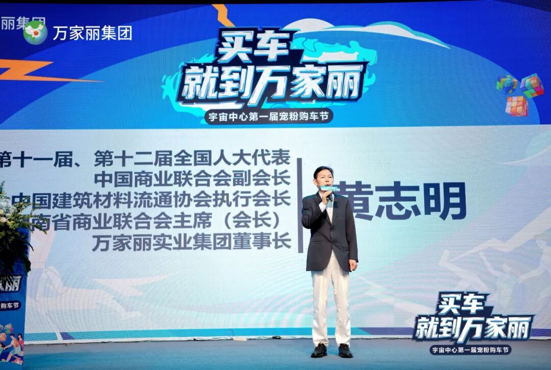 开幕式上,黄志明董事长为此次盛会致辞。他表示,万家丽从中国驰名商标,升级为由国家工商总局和世界网络顶级域名注册的“宇宙中心万家丽”。万家丽的文化在同一天内挂出了三块牌:湖南省党史教育基地、中国商业联合会爱国主义教育基地、全国家居建筑行业党史教育示范基地。同时,万家丽也实现了服务的升级,实现了直接换登机牌、行李托运、离境免税现场办理手续。此次宠粉购车节的举办,既是万家丽响应消费者购车需求、打造便民消费场景的重要举措,也是联动优质车企资源、搭建品牌与用户深度沟通桥梁的创新实践。未来,万家丽将持续发挥“宇宙中心”的区位优势、客流优势与配套优势,为消费者提供更便捷、更优质的购车体验,为车企伙伴创造更广阔的展示与推广空间,共同推动湖南汽车消费市场的繁荣发展。