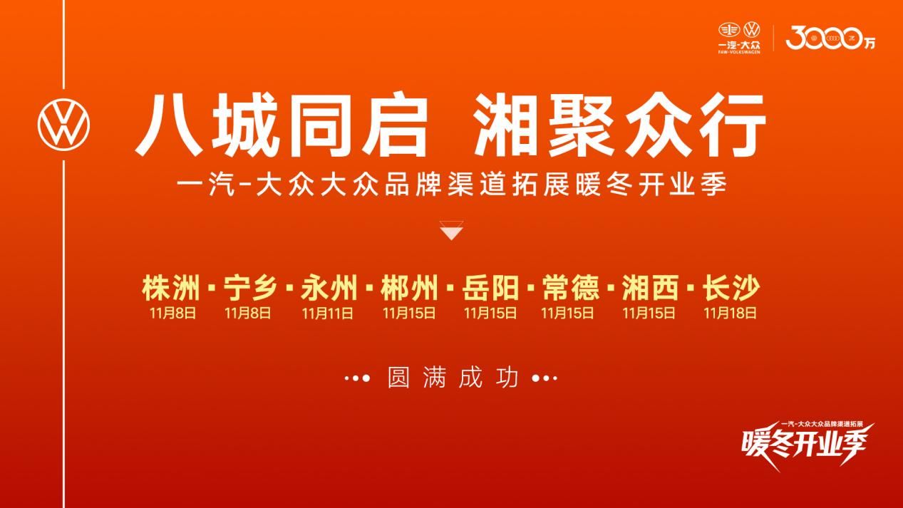 八城同启11天极限接力,伙伴同行共创优质服务生态 本次“八城同启”是一次集速度、规模与质量于一体的渠道创新实践。从株洲、宁乡的双城齐发,到永州的接力奋进,再到郴州、岳阳、常德、湘西的聚力合围,最后汇聚长沙完成荣耀收官。这场跨越八城的“极限接力,不仅展现了一汽-大众大众品牌强大的体系实力,凸显了湖南本土经销商合作伙伴的深度响应,更体现了一汽-大众厂商协力持续深耕湖南市场的坚定决心与战略信心。