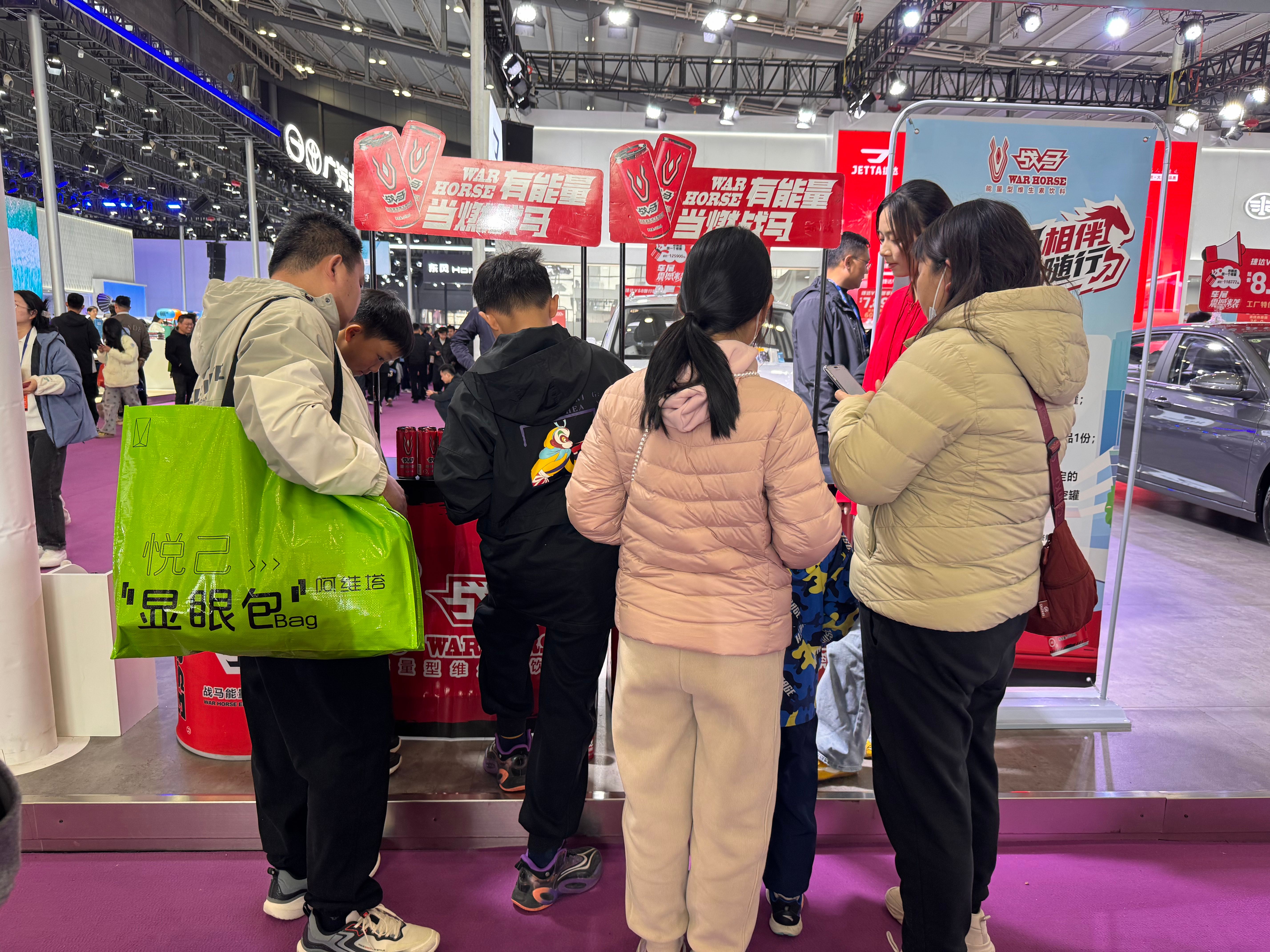2025年12月14日,今天是周末,第21届长沙国际汽车博览会迎来公众观展高峰。知名能量饮料品牌——战马以创新跨界模式,深度联动比亚迪、捷达、长安三大标志性汽车车企,在展馆内共同打造了一系列集产品体验、品牌文化与能量补给于一体的特色互动专区,成为周末观展人群中备受瞩目的焦点。 在长安汽车展台,战马饮料化身为“智能探索伴侣”。结合长安旗下新能源车型的科技体验,观展人员可在融合长安设计元素的专属战马能量站领取特饮,完成从科技感受到身体能量的闭环。