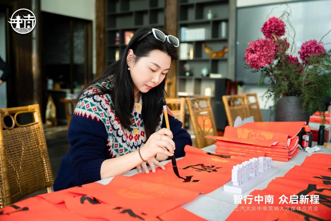 对联书写DIY环节,以传统文化呼应“智行”主题,传递品牌人文关怀。嘉宾们挥毫泼墨,书写寓意吉祥的新年对联,不仅锻炼了动手能力,还感受到了上汽大众品牌文化的独特魅力。