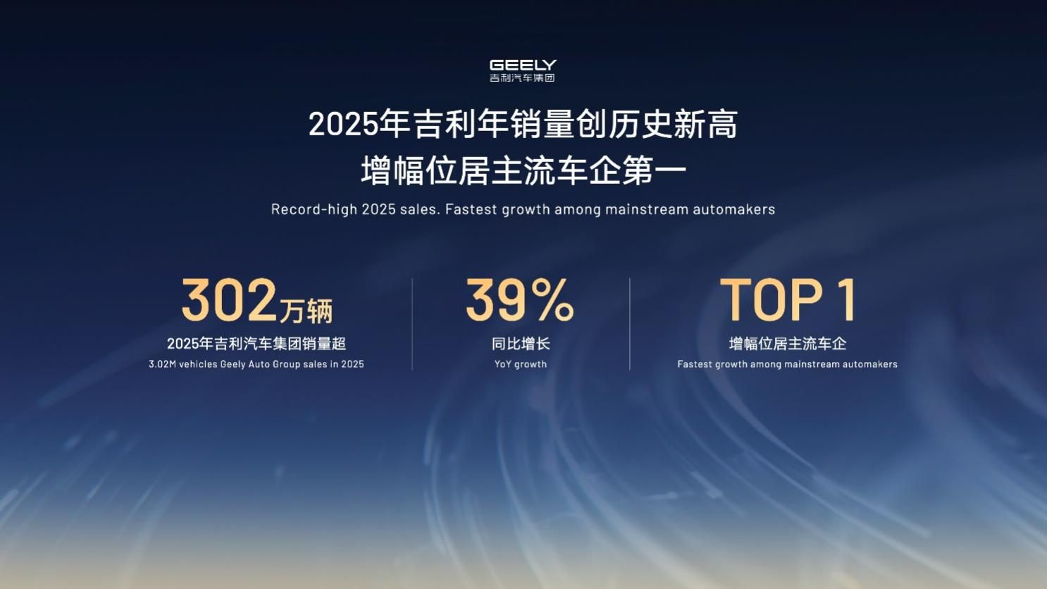 继极氪9X之后,吉利今年将推出全新高端化巅峰之作——极氪8X。极氪8X将搭载全球混动领域唯一的全栈900V高压动力系统、全球首款自研2.0T电混专用发动机、行业首个900V动力域智能体,以及最大功率达290kW的全球首款驱动电驱变速器,为用户带来更纯粹的电感和独一无二的驾驶体验。 全球化践行“区域深耕”+“全球协同”战略,全年出口剑指64万辆 2025年,吉利汽车集团累计销量302万辆,创下历史新高,同比增长39%,增幅位居主流车企第一位。2026年,吉利汽车集团将全年销量目标定为345万辆,其中出口销量目标64万辆。基于此,吉利将践行“区域深耕”+“全球协同”的全球化战略,并将在全球打造3个15万级、2个10万级区域市场,持续向全球市场输出高价值智能精品车,稳步推进高质量出海。